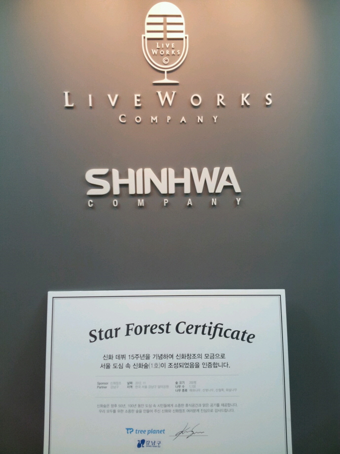 신화 숲은 한국에 생긴 최초의 스타숲이다.