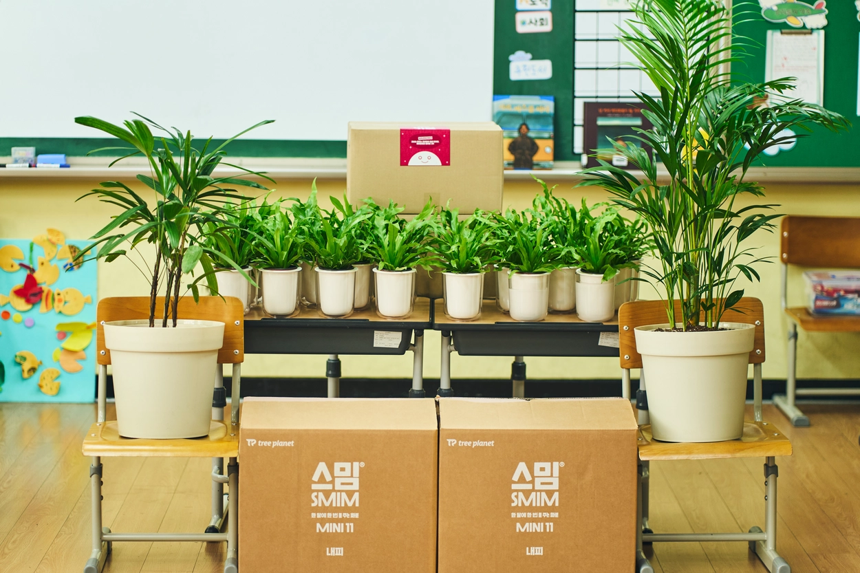 트리플래닛의 검증된 환경교육자료와 교실숲 나무들을